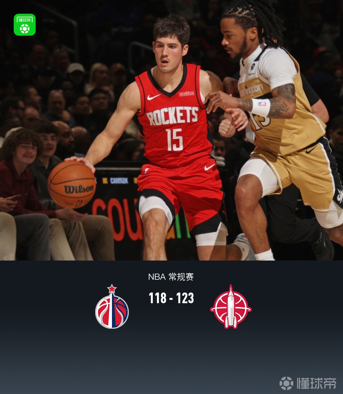 第四节奇才谢里夫-库珀拿下11分,火箭申京拿下11分,最终奇才118-123不敌火箭