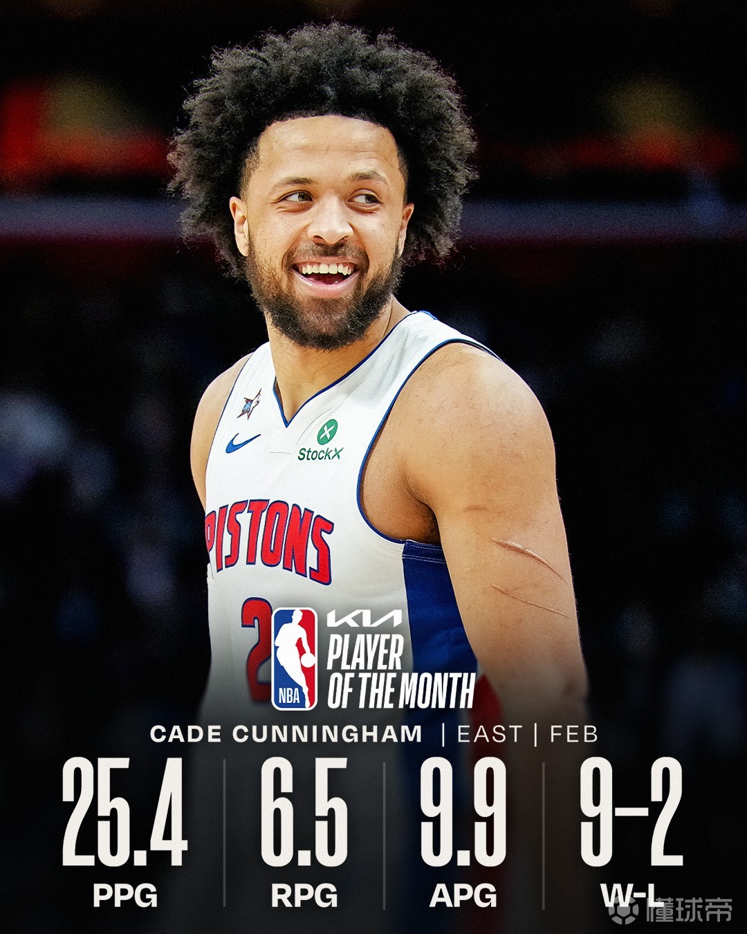北京时间3月4日,NBA官方公布了2月份的东西部最佳球员,东部方面,坎宁安成功当选,西部的最佳球员则是文班亚马。