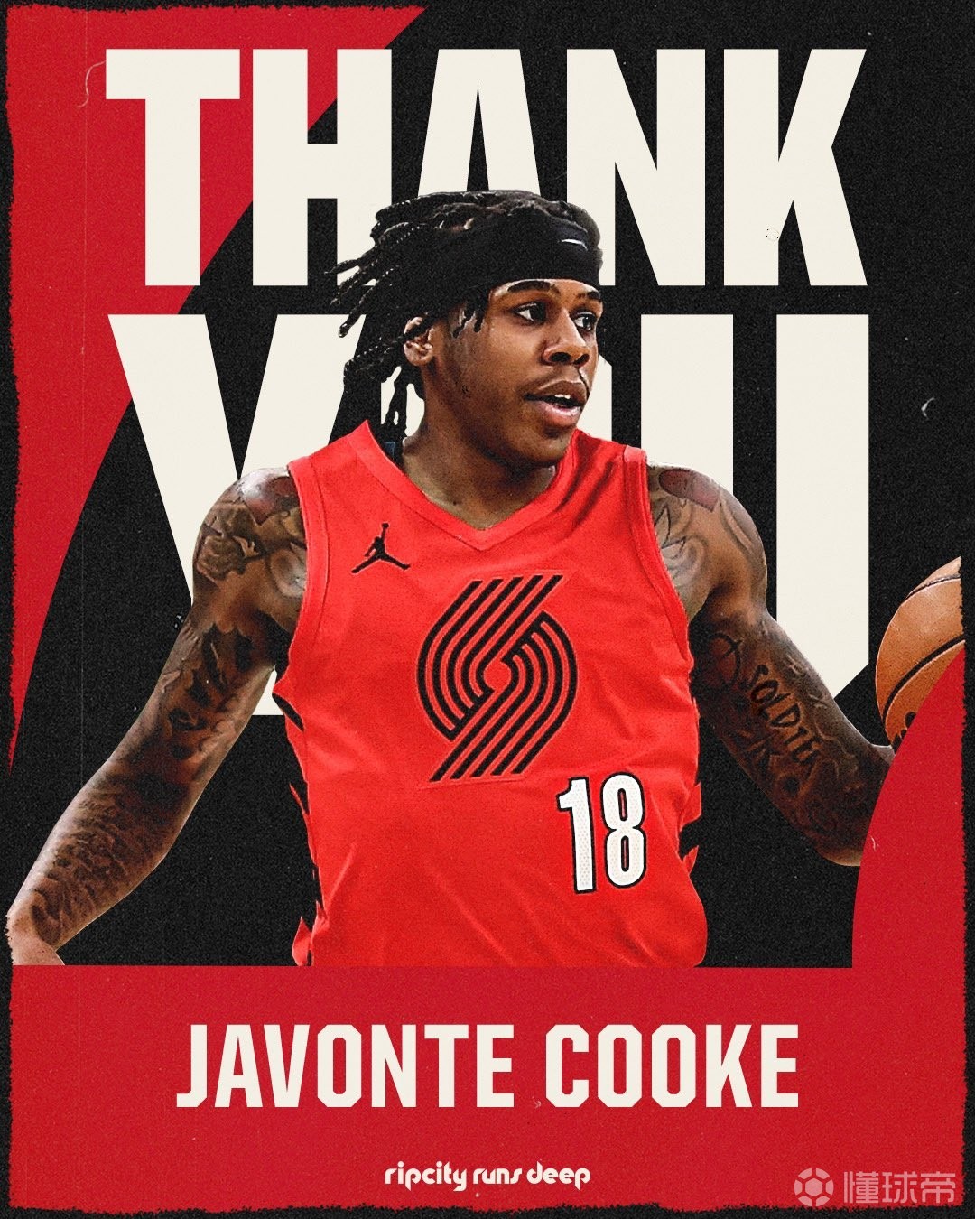 开拓者官方宣布裁掉新秀前锋库克,并为库克制作海报致谢。