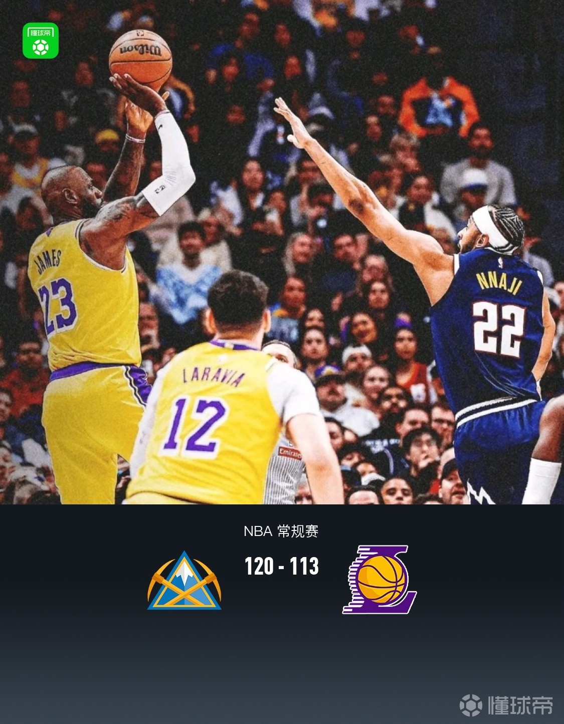 丹佛掘金贾马尔-穆雷28分4板7助,约基奇28分12板13助;洛杉矶湖人东契奇27分11板7助,海耶斯19分5板2助。