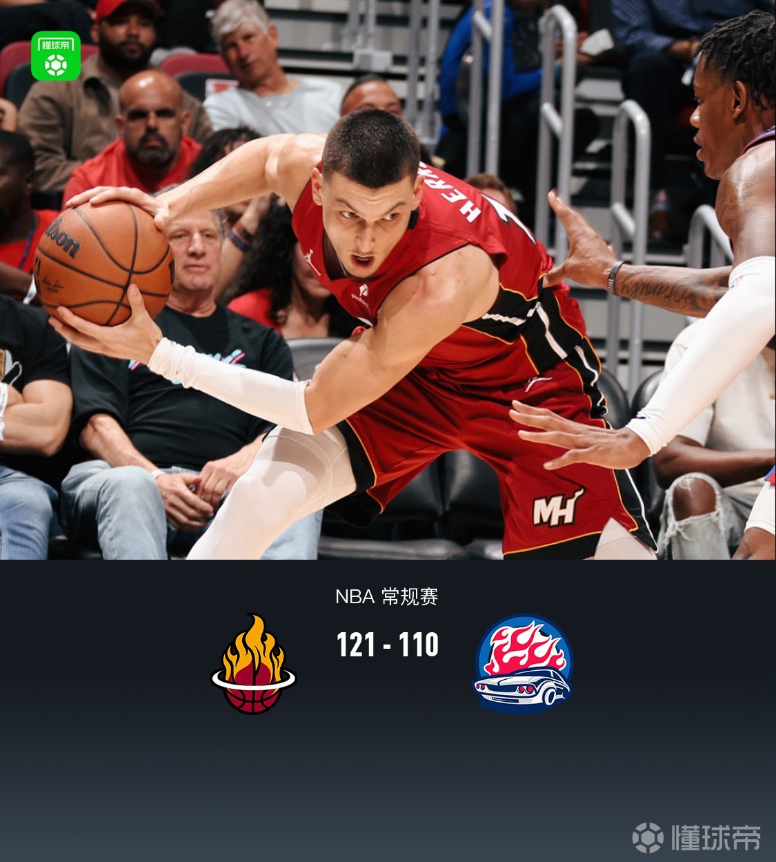 第四节热火亚库契奥尼斯拿下7分,活塞保罗-里德拿下10分,最终热火121-110战胜活塞
