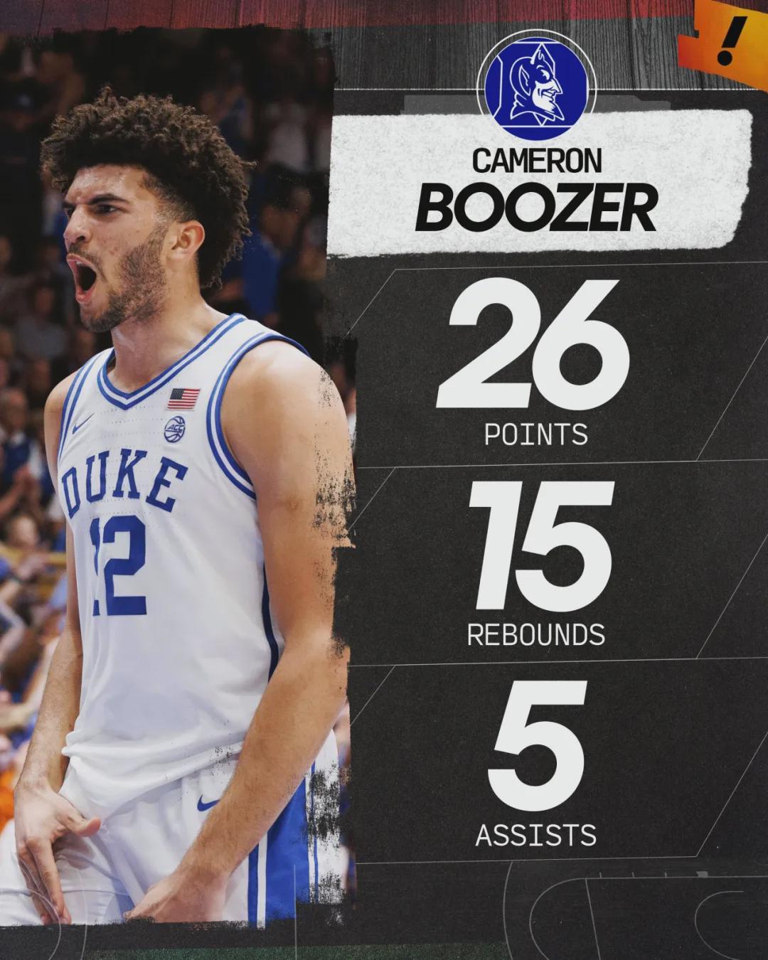本赛季布泽尔为杜克出战31场比赛,场均得到22.7分10.2篮板4.1助攻1.5抢断0.5盖帽2.2失误,三项命中率:58.3%,40.7%,78%。场均得分排名NCAA第6,场均篮板第13。杜克大学场均净胜对手20.4分,高居NCAA联赛第一!