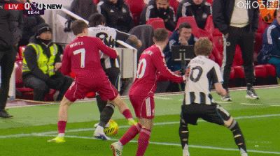 第36分钟,戈登禁区右路低射远角破门,纽卡1-0利物浦