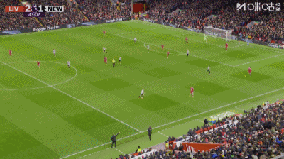 第36分钟,戈登禁区右路低射远角破门,纽卡1-0利物浦