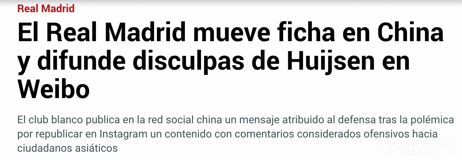 阿斯:赫伊森社媒辱华事件引众怒,皇马非首次卷入类似风波