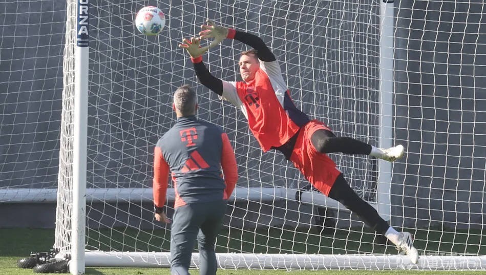据报道,当地时间周四下午2点,诺伊尔自12天前受伤以来首次与其他门将一起训练,他与乌尔比希、乌尔赖希以及青年队门将扬尼斯-贝尔特尔一同出现在训练场上。