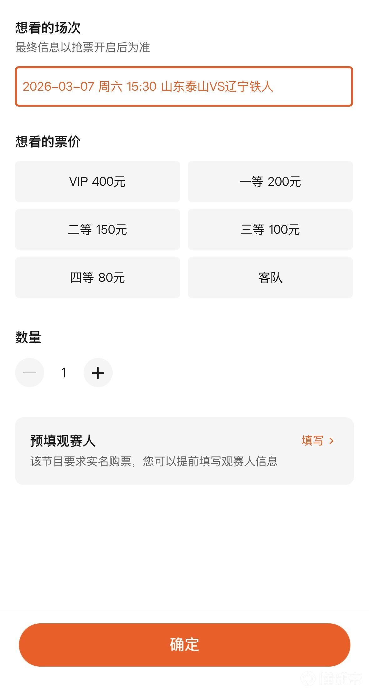 山东泰山与辽宁铁人的售票将于周一上午10:00开售值得一提的是,本次开放客队票出售。