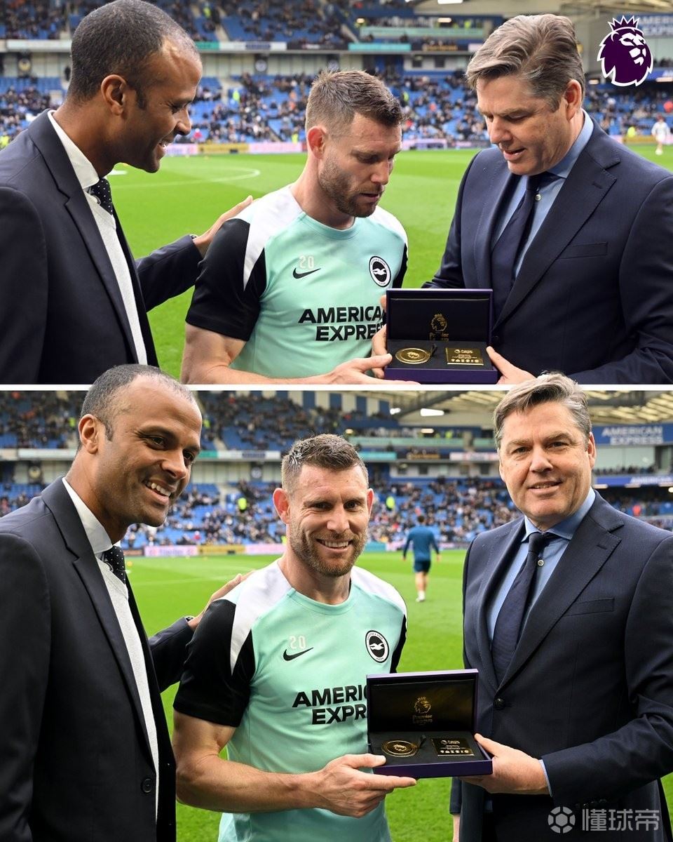 在美国运通球场,全场球迷的注视下,米尔纳在开球前走上场地中央。英超联盟首席执行官理查德-马斯特斯以及英格兰职业足球运动员协会首席执行官马赫塔-莫兰戈共同为他颁发纪念奖杯,祝贺他创造这一载入史册的里程碑。