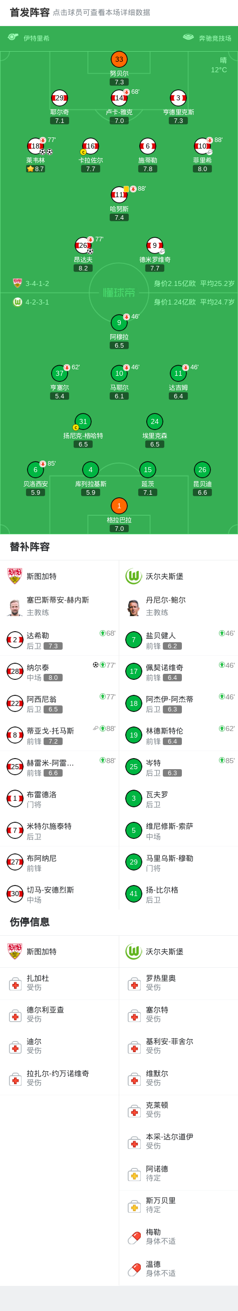 北京时间3月1日德国足球顶级联赛 联赛 第24轮,斯图加特主场对阵沃尔夫斯堡。斯图加特昂达夫破门,莱韦林梅开二度,纳尔泰破门。最终比分斯图加特 4-0 沃尔夫斯堡。