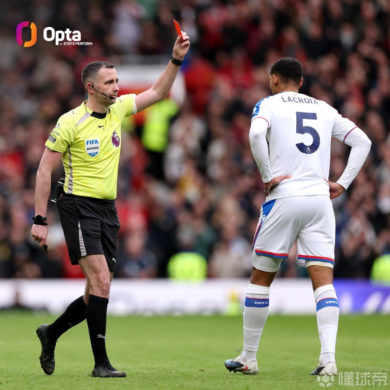 周日结束的一场英超第28轮比赛,水晶宫客场1-2遭曼联逆转,水晶宫中卫拉克鲁瓦破门,但之后又被红牌罚下。