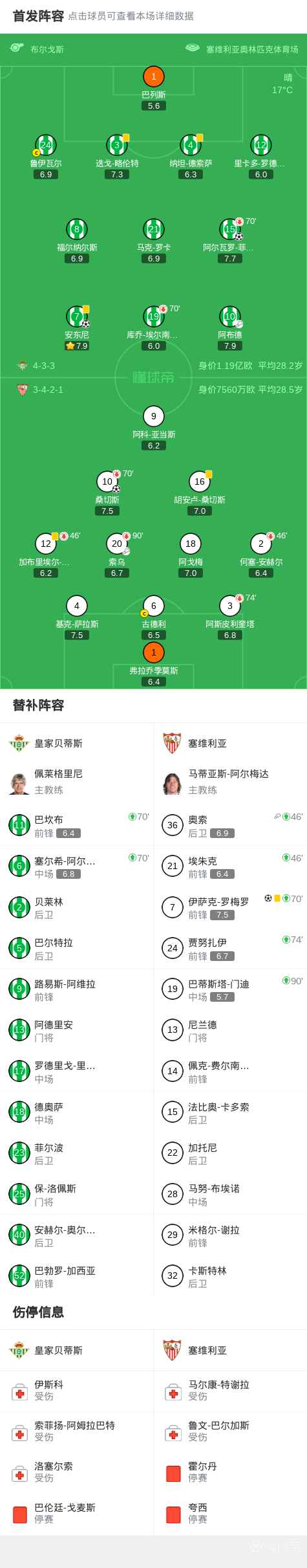 第61分钟,奥索传中,桑切斯头槌破门扳回一球,贝蒂斯2-1塞维利亚