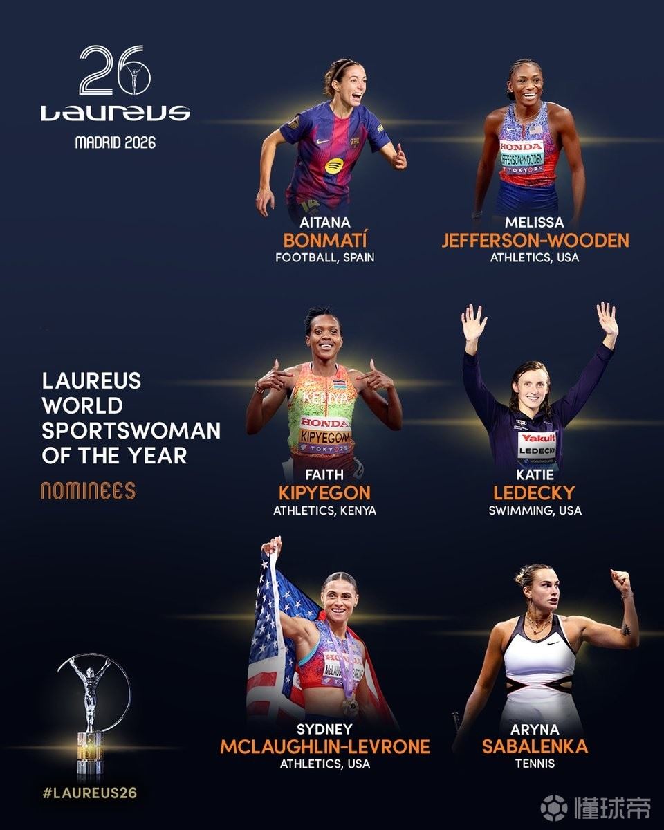 北京时间3月3日,2026年劳伦斯世界体育奖(Laureus World Sports Awards)正式公布了“年度最佳女运动员奖”的最终提名名单。
