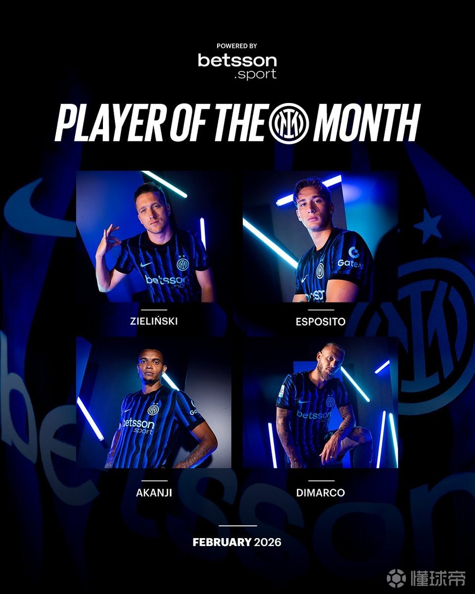 北京时间3月4日,国际米兰官方公布了球队2月最佳球员候选,其中阿坎吉、皮奥、迪马尔科、泽林斯基四人在列。