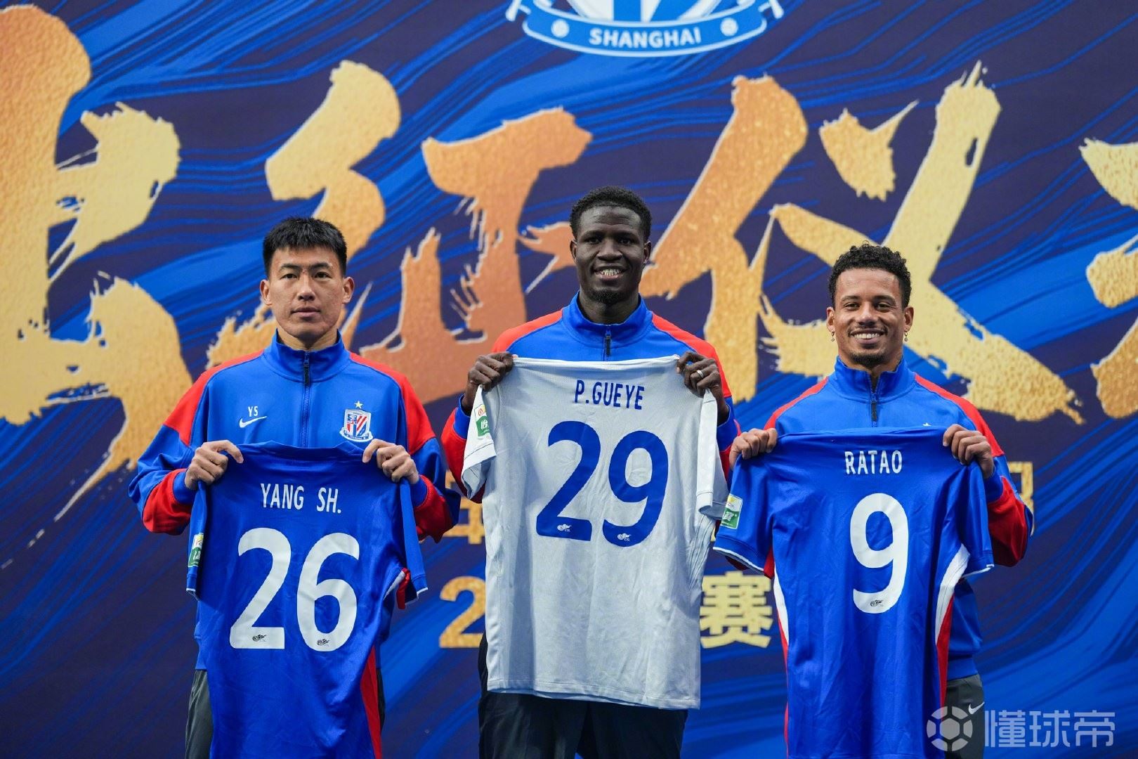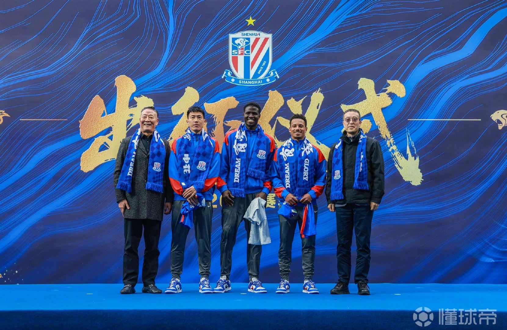 在新援亮相环节,三位新加盟的球员杨帅、盖伊、拉唐共同登台,杨勇、董珞向新援授新赛季球衣,樊建林、柳海光为新援戴上申花围巾。