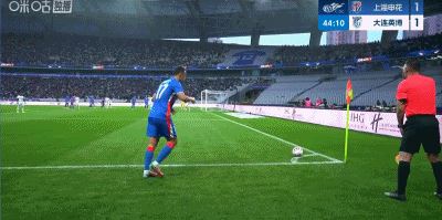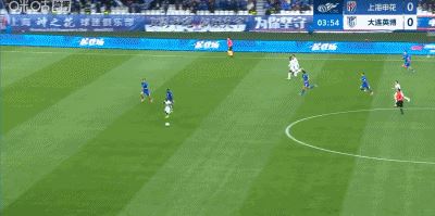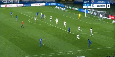 第45分钟,高天意角球助攻,盖伊头球冲顶打入处子球,申花2-1反超英博!