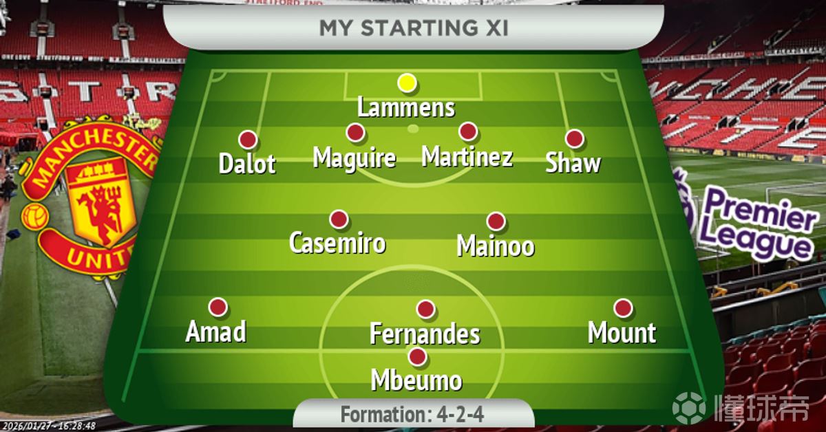 卡里克的另一个选择是召回芒特进入首发阵容。这对红魔来说是一个非传统的调整,因为芒特更偏向于进攻型中场的角色。
