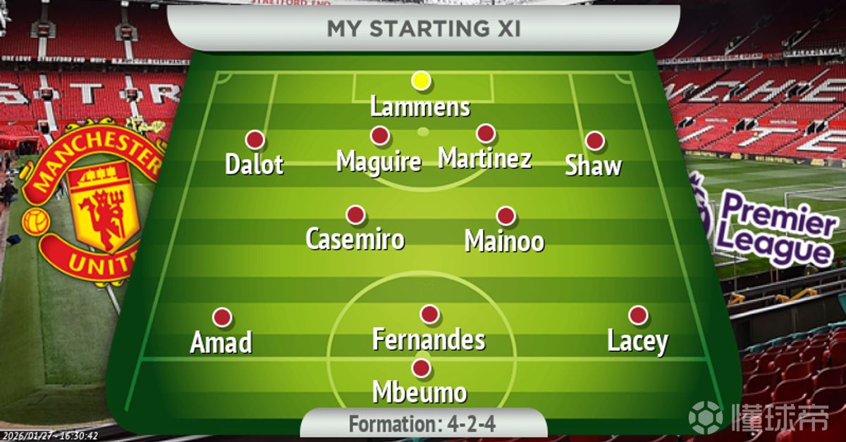 曼联首发阵容:谢伊-莱西取代多古