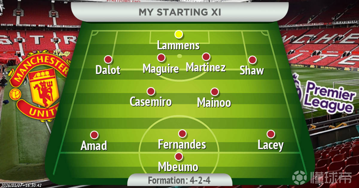 曼联首发阵容:谢伊-莱西取代多古