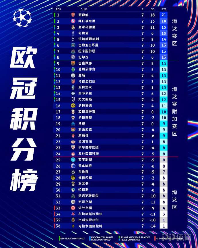 而目前暂处附加赛区的巴萨、曼城、马竞等队,除了必须取胜之外,还必须获得足够多的净胜球才有可能逆转晋级。