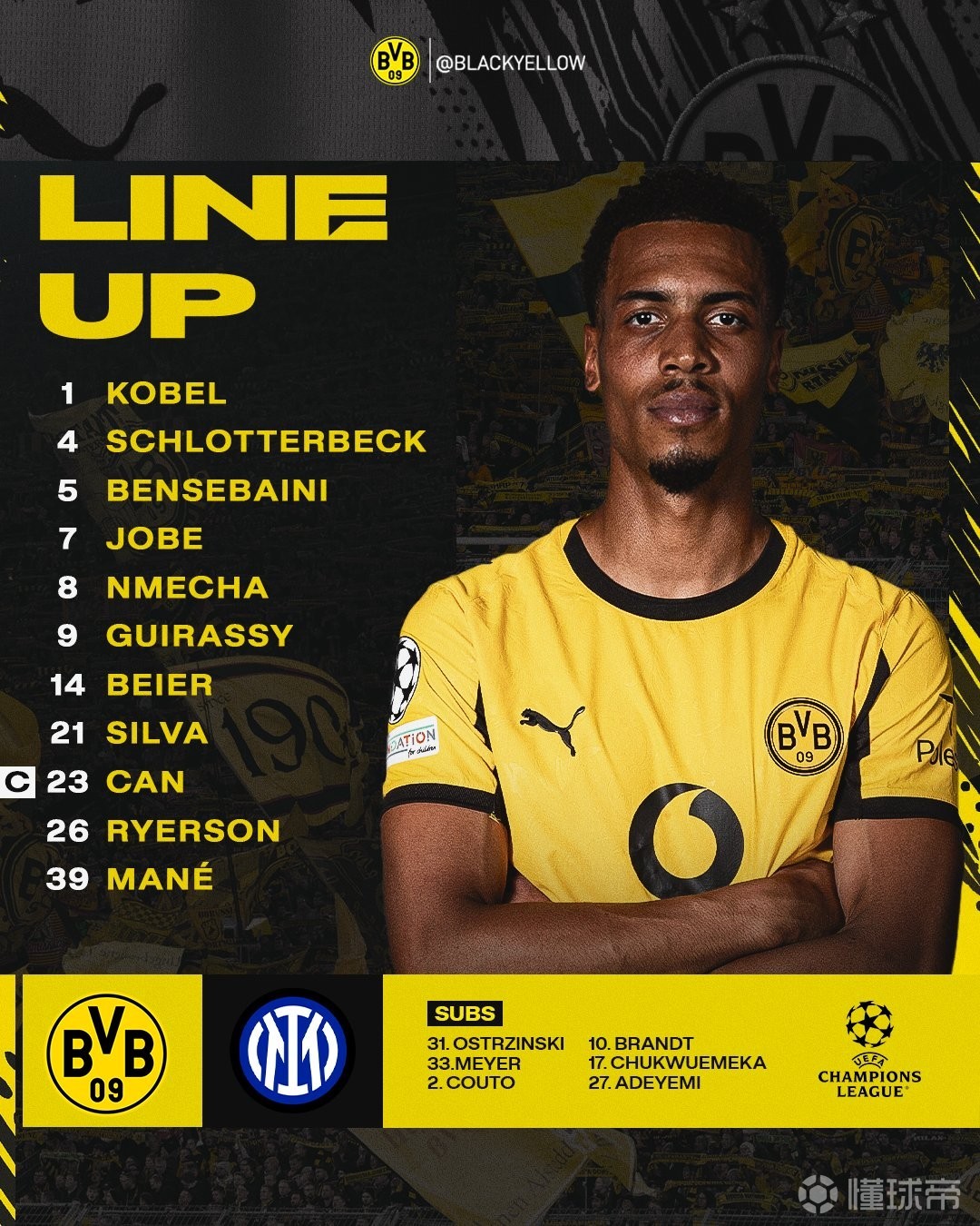 北京时间1月29日4:00,欧冠联赛阶段第8轮,多特蒙德坐镇西格纳-伊杜纳公园球场迎战国际米兰,本场主裁判为伊斯特万-科瓦奇,赛前双方首发出炉。